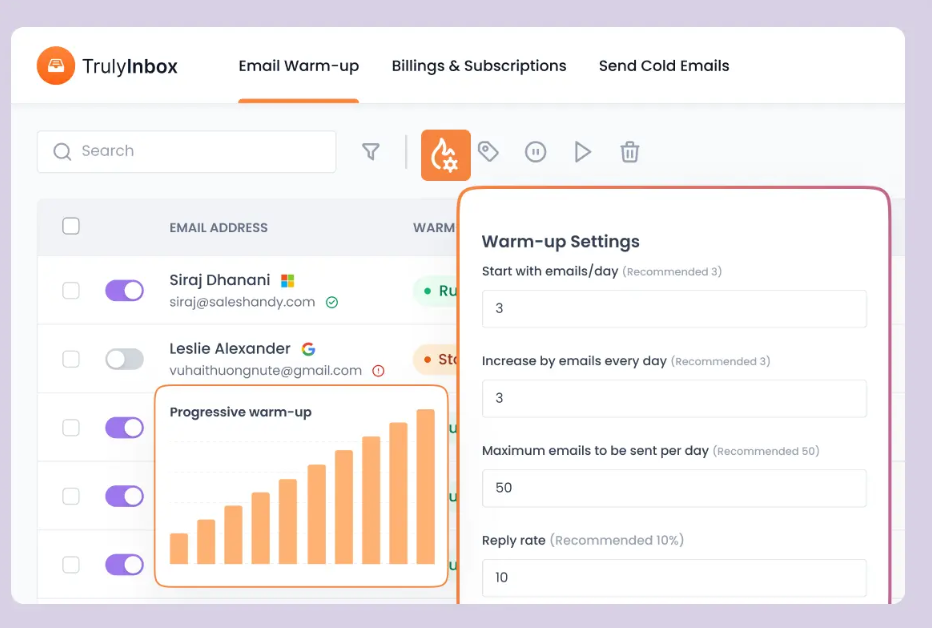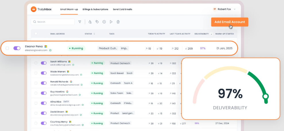 While the tool is powerful, setup may be slightly technical for some users, particularly with Gmail’s security settings and IMAP configurations. However, once accounts are connected, the warm-up process runs automatically in the background, requiring minimal ongoing management. For businesses that rely on cold email, TrulyInbox delivers a practical, affordable, and effective way to maintain a positive sender reputation and ensure higher inbox placement rates.