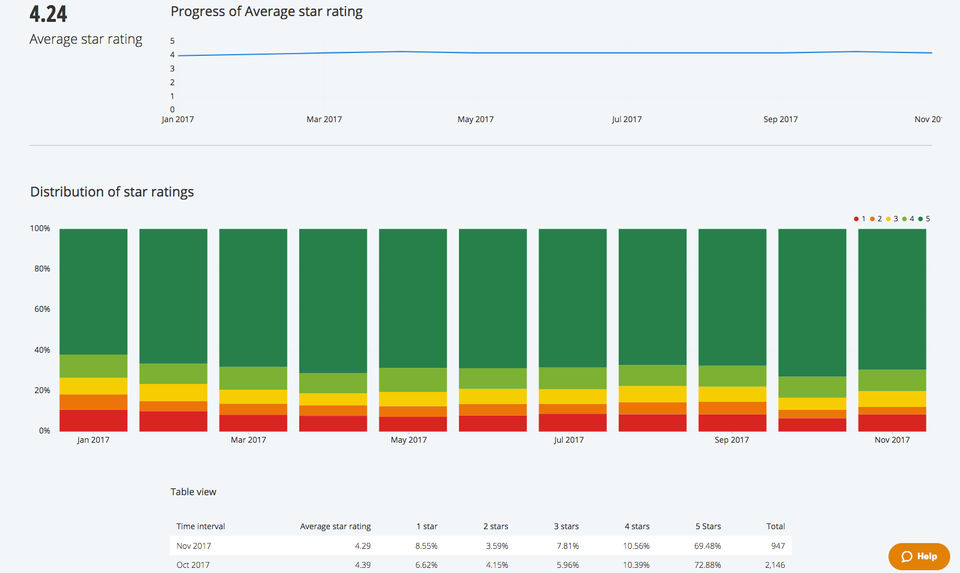 Very transparent, easy to use and useful platform to gather reviews and improve both services and products and customer service. Useful for SEO too. Great backend.