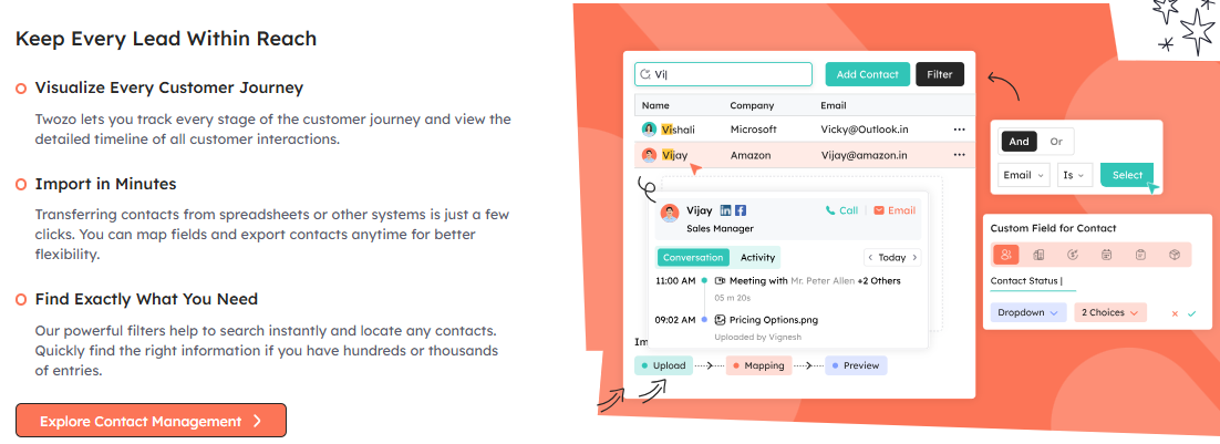 Top 5 Twozo CRM features