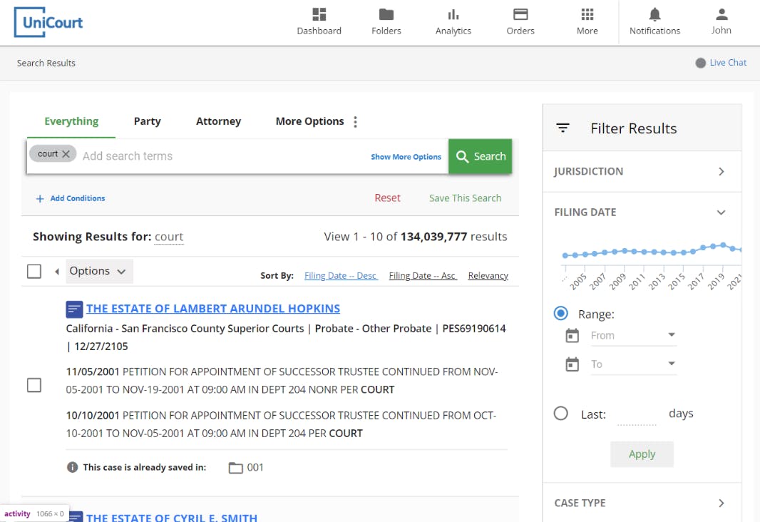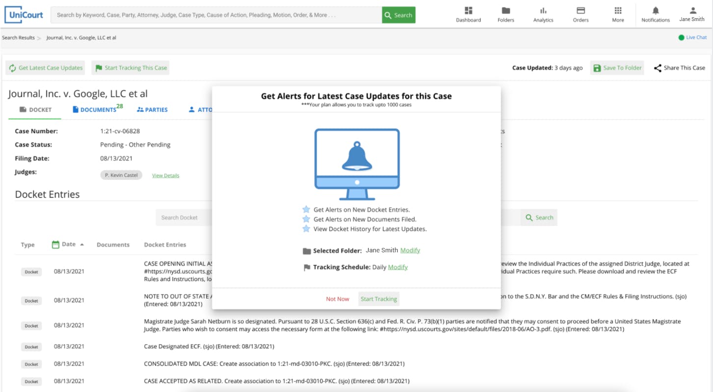UniCourt is allowed 0 Days Free Trial.