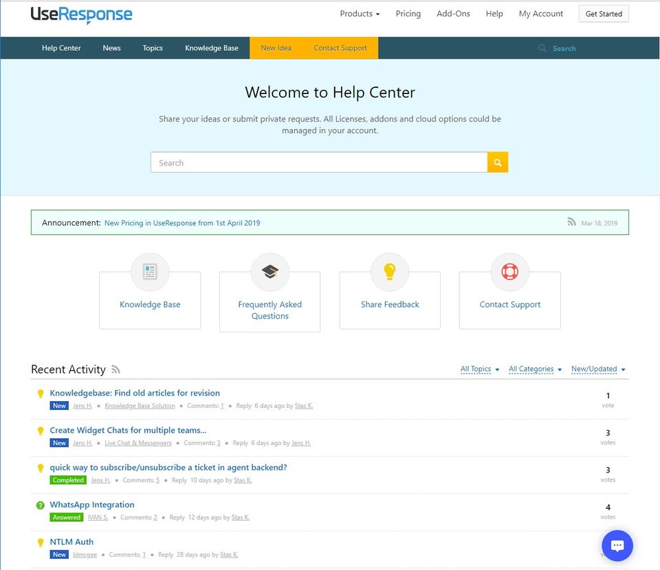 UseResponse is the Help Desk Software used for the below functionalities.