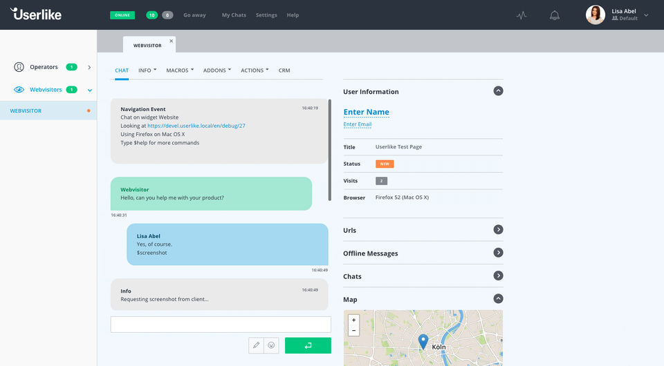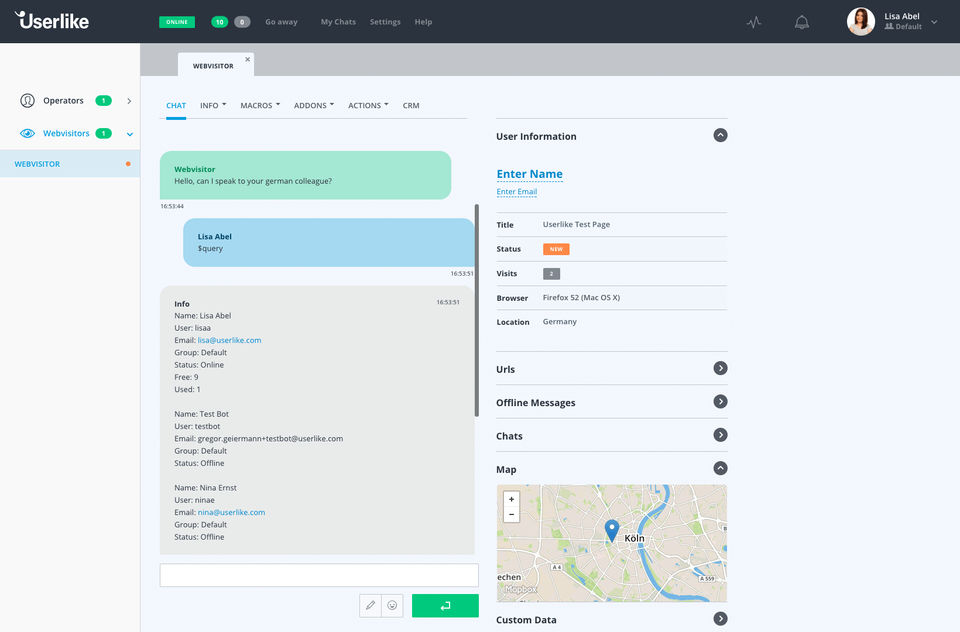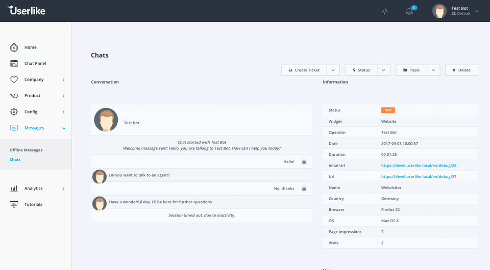 Userlike provides Phone,Business Hours,Online (Ticket) support.