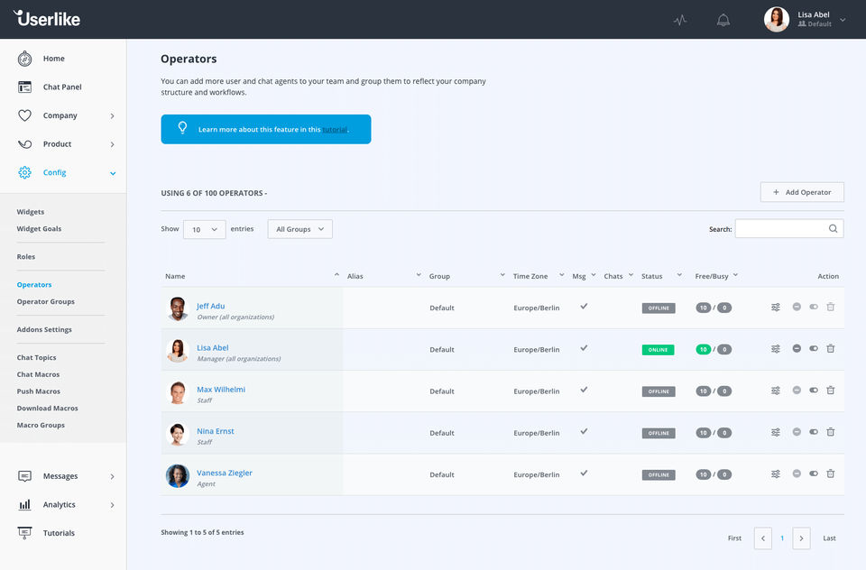 Userlike provides Help Guides,Blogs,Video Guides for the software training.