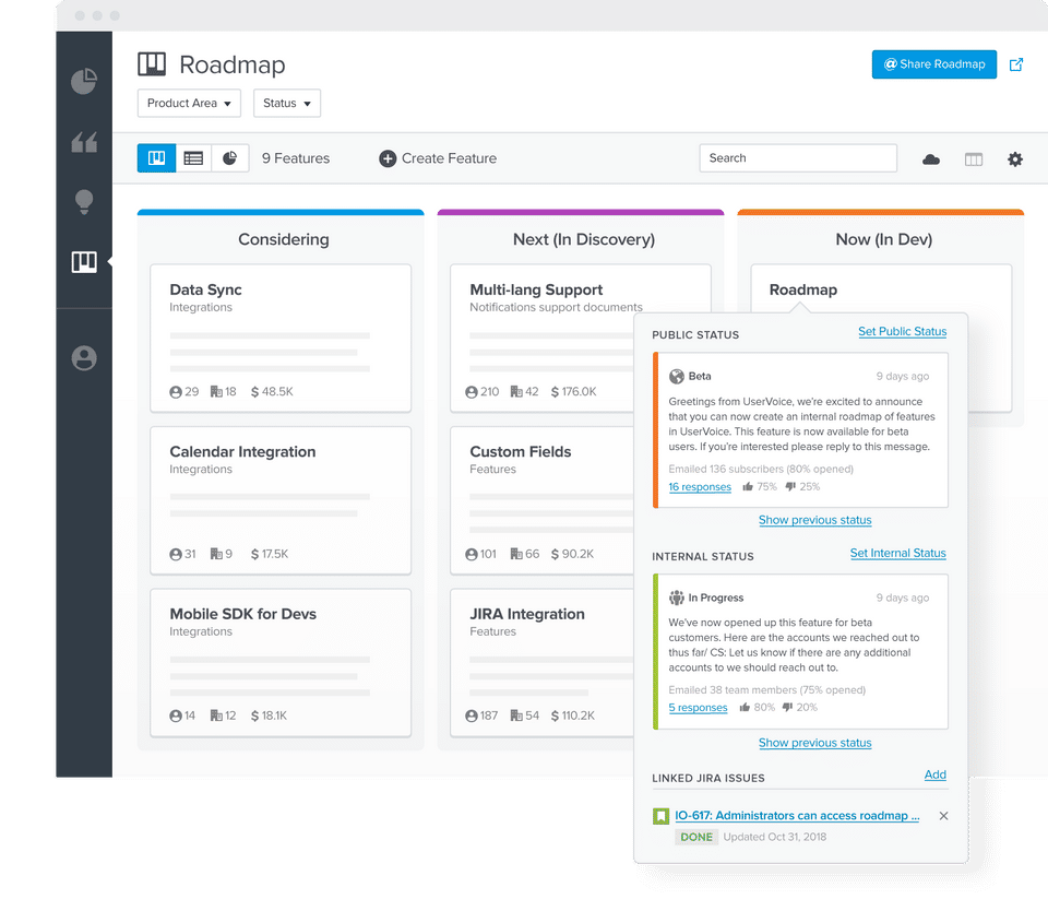 - Provide feedback context and track feature development progress