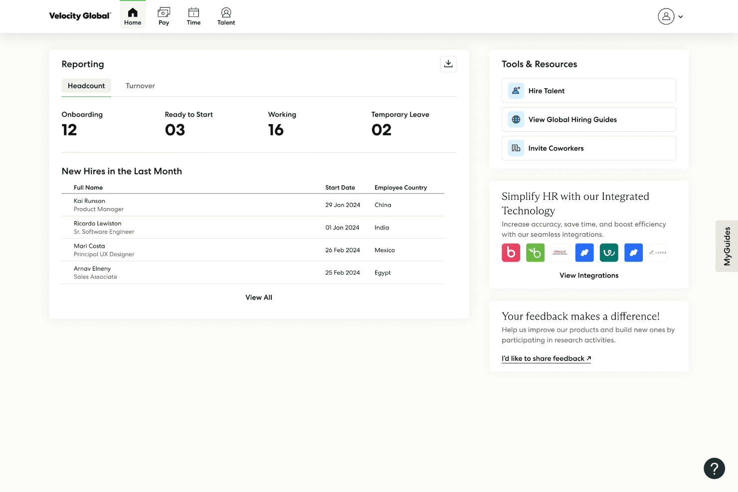 Velocity Global is the Employer of Record (EOR) Software used for the below functionalities.
