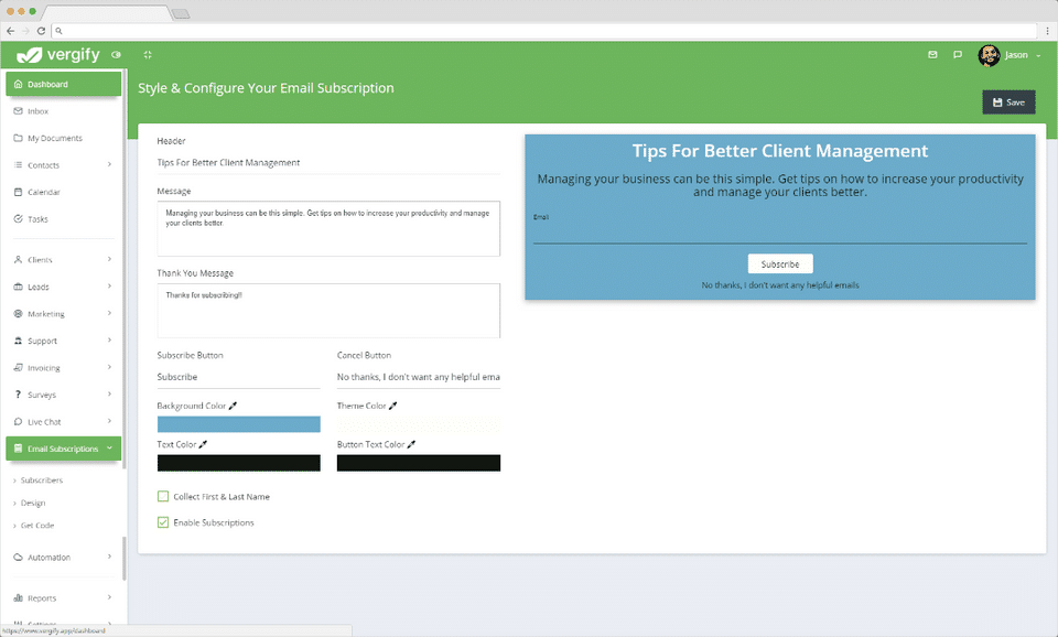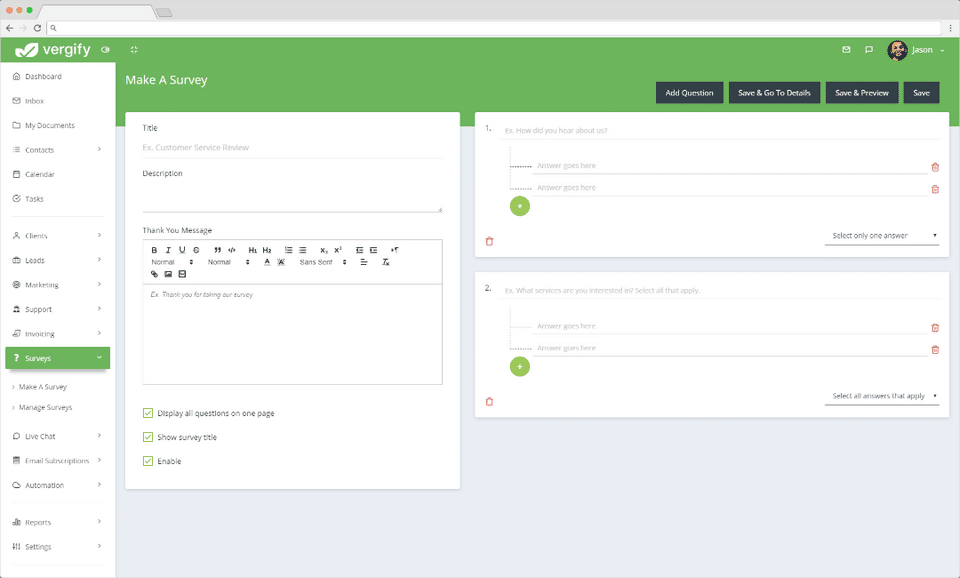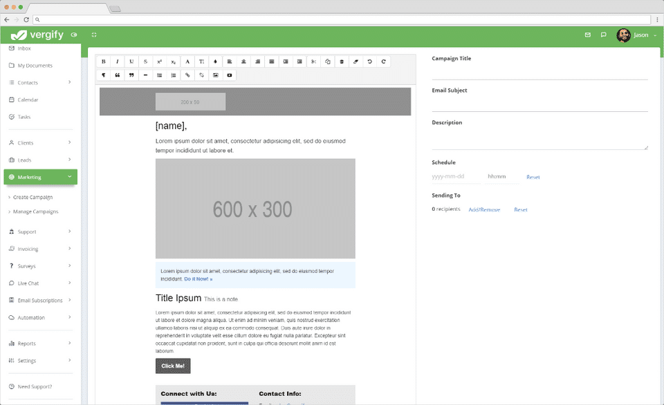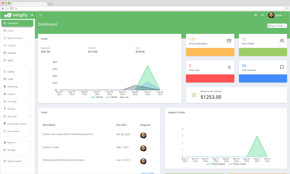 Vergify is the CRM Software used for the below functionalities.