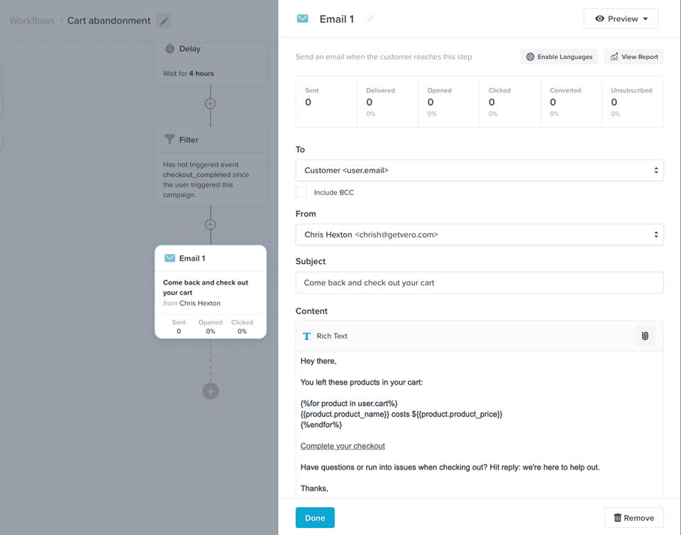 We were previously using a managed email service that was significantly more expensive. Vero helped us migrate away from that and minimize our variable cost of each send.