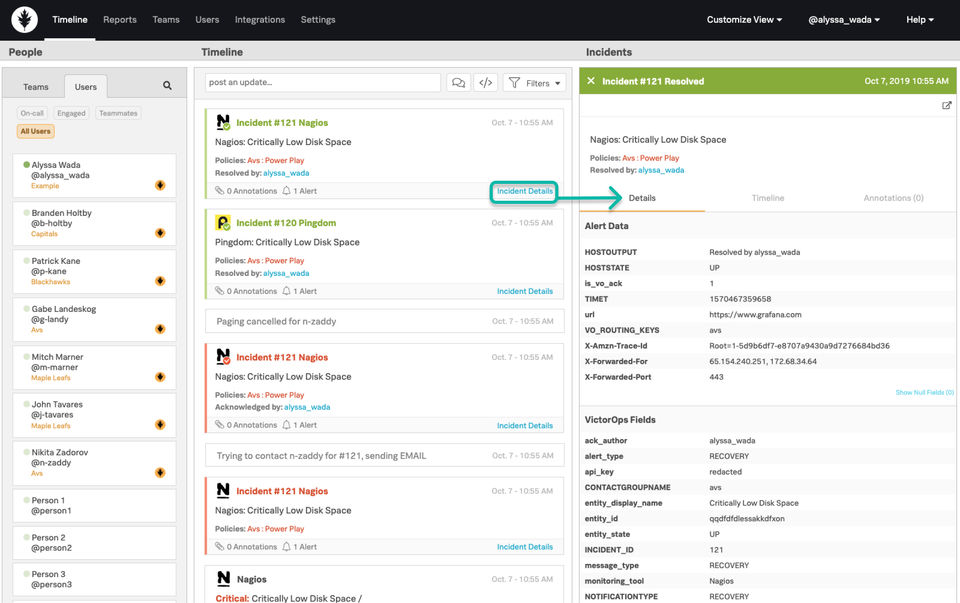 VictorOps is the Incident Management Software used for the below functionalities.