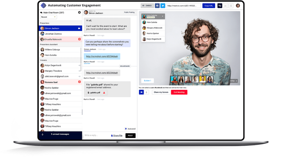 - Evergreen Webinars Participants : 5000 Browser Based Simulated Chat Vimeo & YouTube Support 'Start Now' Option Call-to-Action Buttons Content Seeding to YouTube