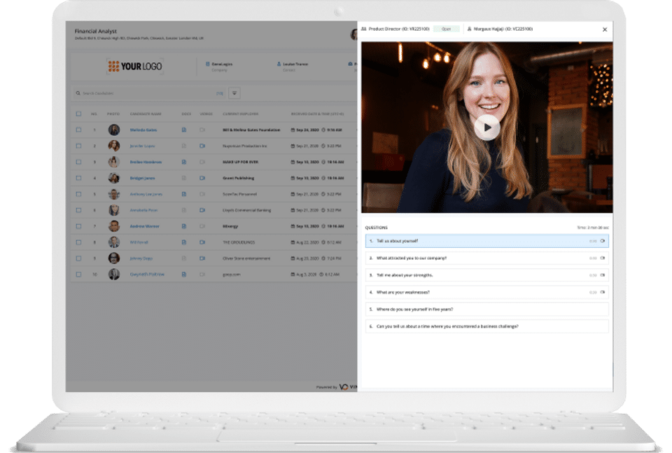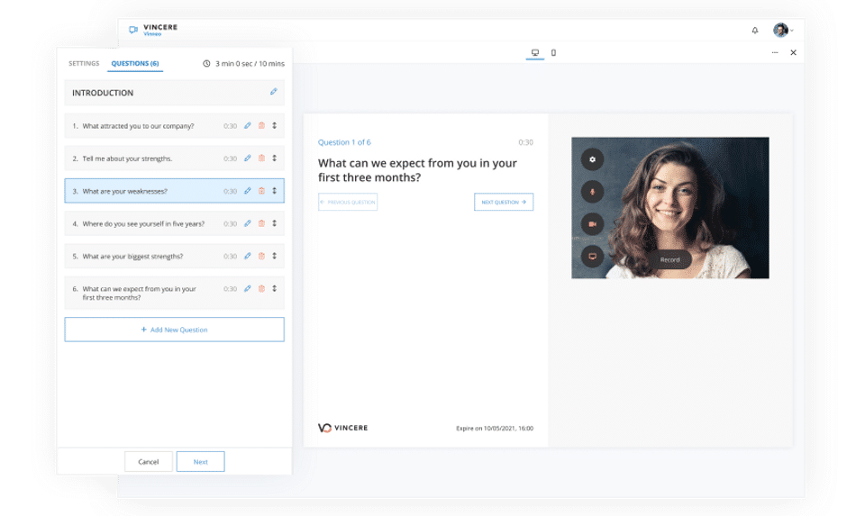 Vincere Vinneo is the Video Interviewing Software used for the below functionalities.