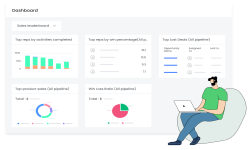The software provides customizable dashboards, real-time analytics, and detailed reports to help businesses gain insights into customer behavior, sales performance, and overall business growth. AI-powered analytics further enhance decision-making by predicting customer trends and recommending actions.