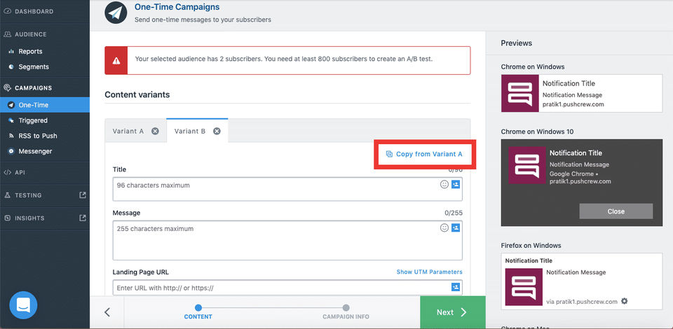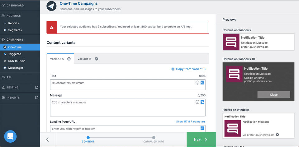 VWO Engage is the Push Notification Software used for the below functionalities.