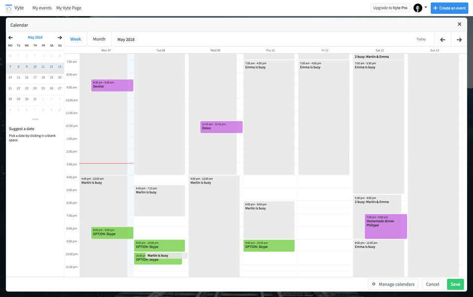 Vyte.in is a very convenient tool for organizing meeting, calls and various appointments by sending a single link. All you have to do is customize your message, connect the calendar app you use and simply send the link to your contact (or include it in an email. The best thing is that Vyte.in eliminates the back-and-forth in communication and you can quickly arrange a meeting that will immediately be reflected in your calendar.