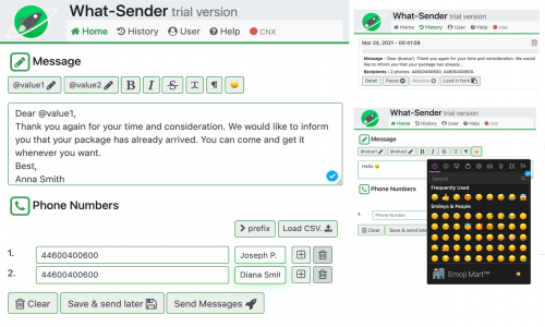 WhatSender lets users send messages even to contacts that are not in their address book. Users can also manage multiple accounts from one platform using WhatSender. The software also provides a report that allows users to check the performance and effectiveness of their campaigns. On the 27th March 2020, WhatSender Profile's latest version was released.