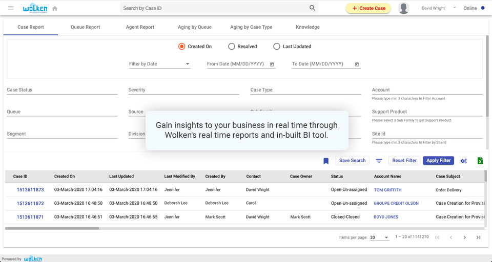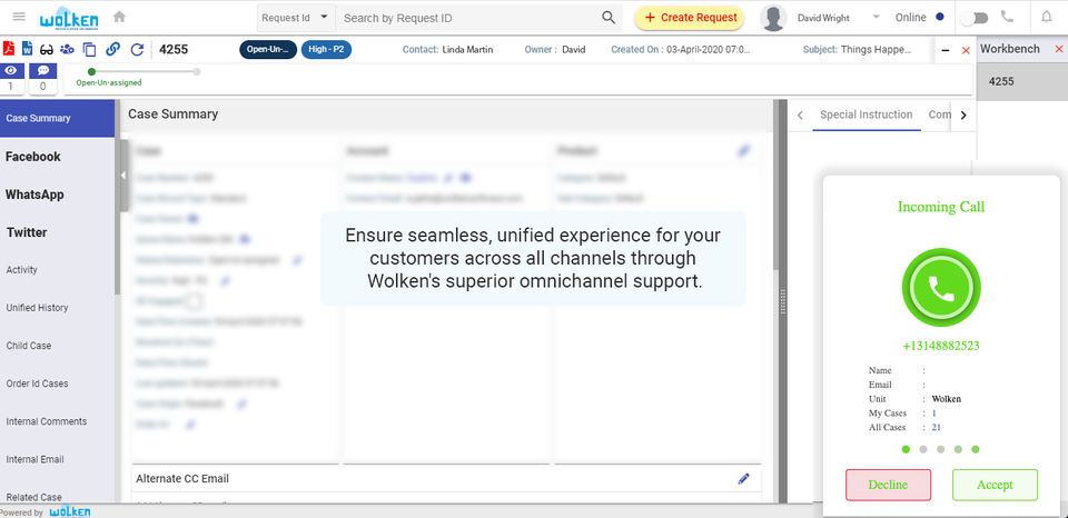 Wolken ServiceDesk provides Phone,Online (Ticket) support.
