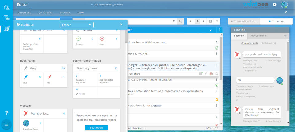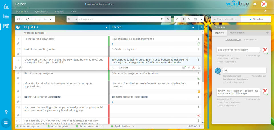 Wordbee is a cloud-based translation management solution that is scalable for Enterprises and LSPs. It integrates project management with business analytics capabilities to allow you to track KPIs in your translation projects while forecasting effort, dates, and costs. Wordbee Beebox reduces the burden of localization projects by half by focusing on automating and simplifying the translation process. It offers a smart end-to-end translation management solution called Wordbee Translator to translate documents and projects. Users can also automate quoting and invoicing using Wordbee Translator. The platform links a variety of CMS systems to your preferred TMS or supplier. You can also get live preview and in-context translation. It also ensures that your assets are continuously translated as they are created and updated. Additionally, all three versions of TBX are supported by Wordbee Translator, as well as all public standard variations (dialects) of version 3.