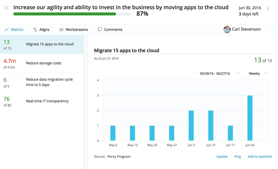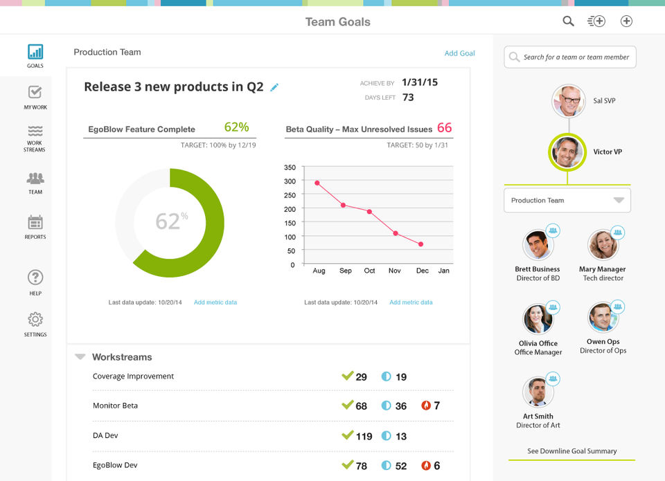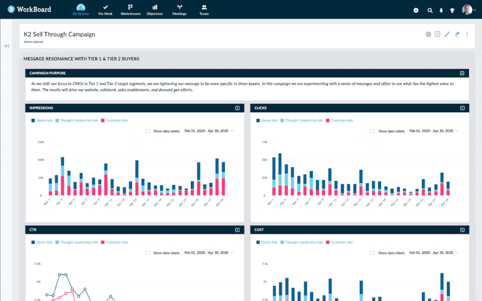 Workboard had a modern interface that appealed to my team. It is easy to learn and get up and running on.