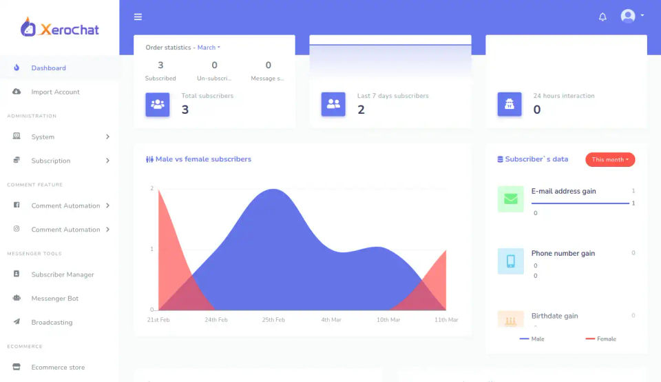 XeroChat's eCommerce in Facebook Messenger helps to create a store online without an eCommerce site. Creating the chatbot with XeroChat's flow builder is very easy. it helps me to post on social media whenever I want, I just create a campaign for the scheduled posts and it does the job. My social media marketing is now super easy with XeroChat.
