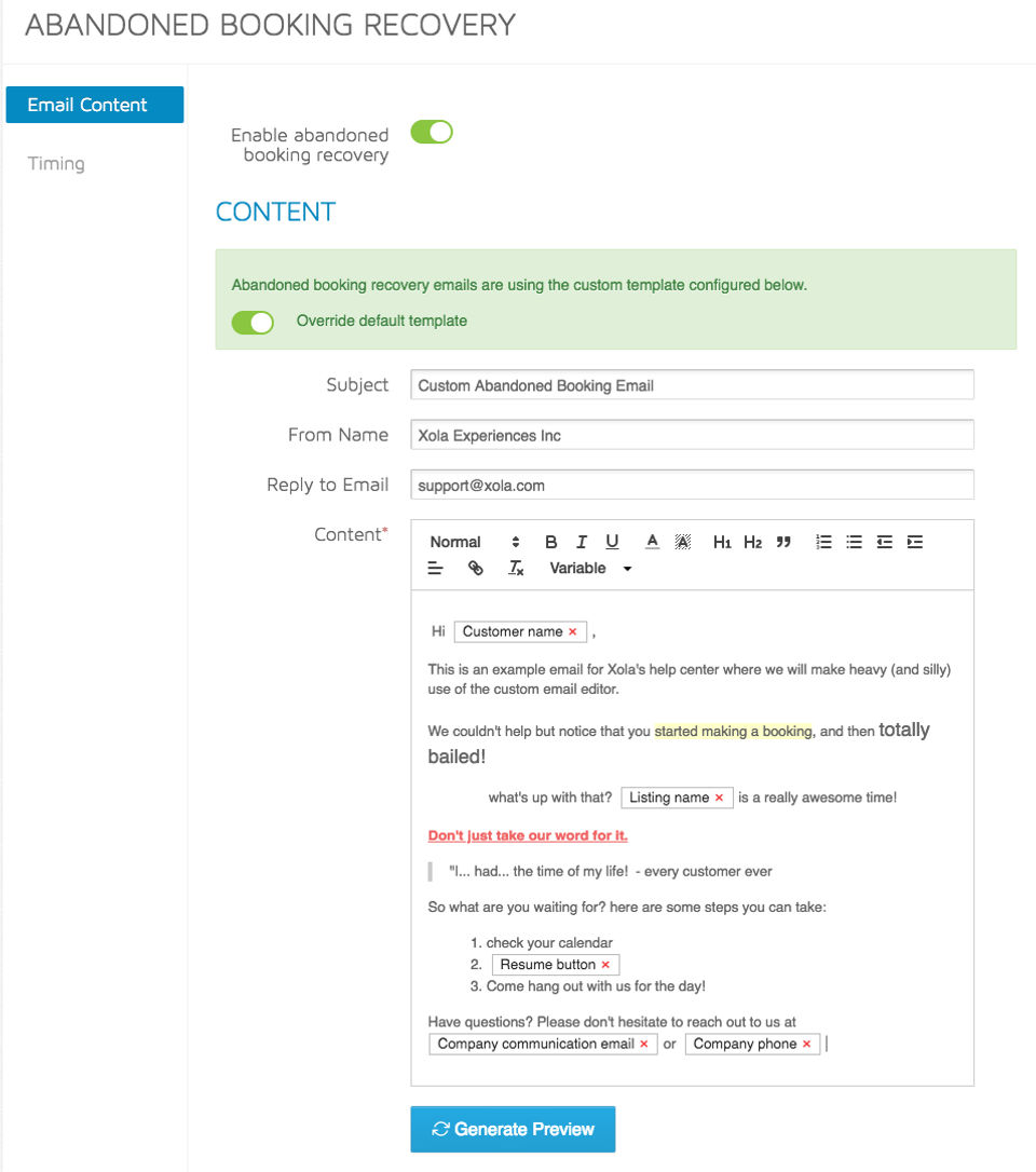 Xola is customizable to a reasonable extent in order to fit my business’ needs.