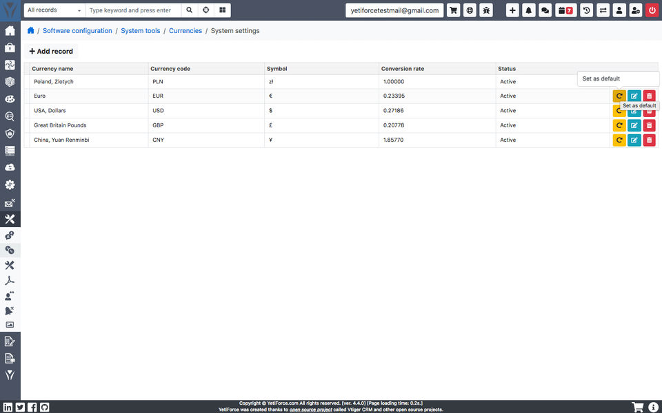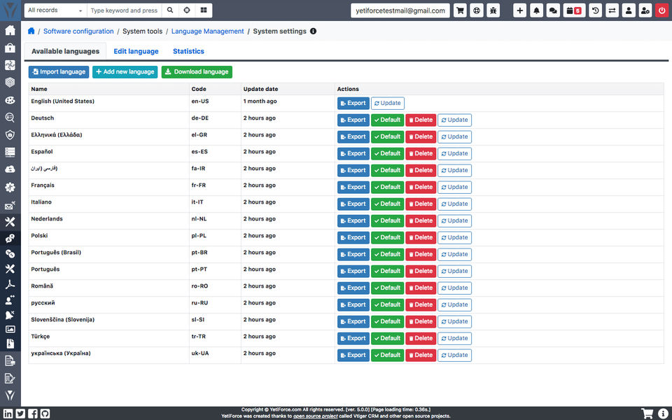 While we gave YetiForce CRM a try, we have moved on from it to another ecommerce/CRM combination solution that is also free, but much easier to navigate.