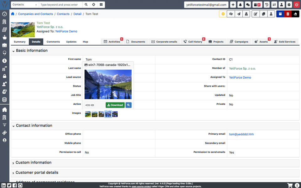 - Company Name: YetiForce CRM