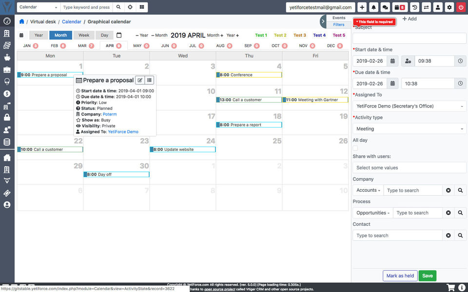 I like that YetiForce CRM gives you all the necessary features of a paid CRM for FREE!