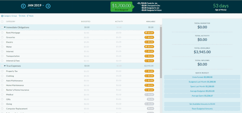 You Need A Budget is the Personal Finance Software used for the below functionalities.