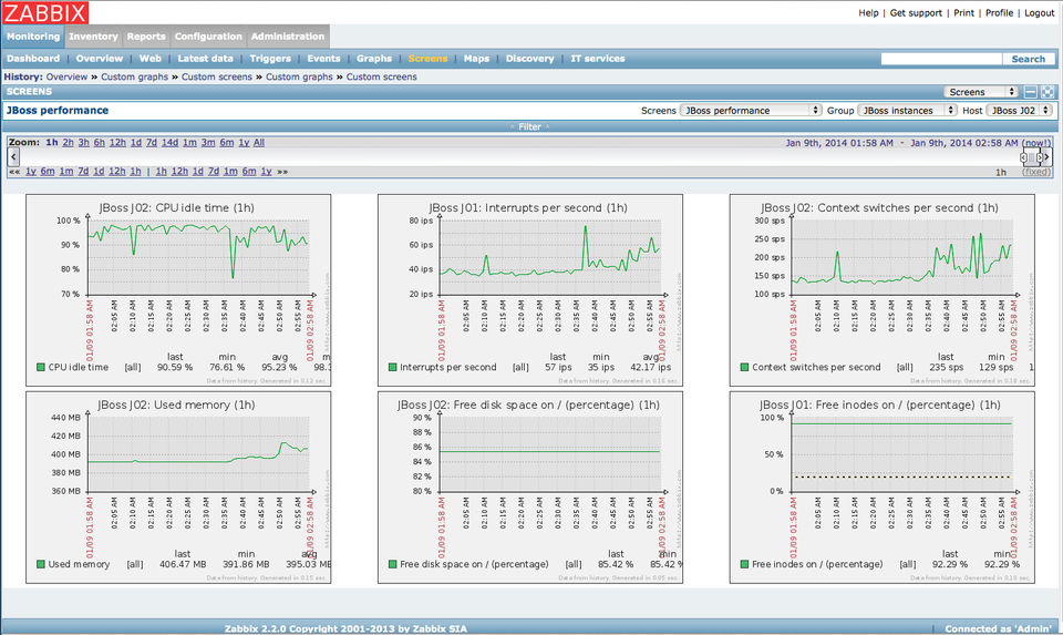 Zabbix provides incredibly flexible reporting and monitoring views on a huge number of metrics. While not the most intuitive option, the ability to scrutinize your environment from many different perspectives outweighs the time consumed to set it up.