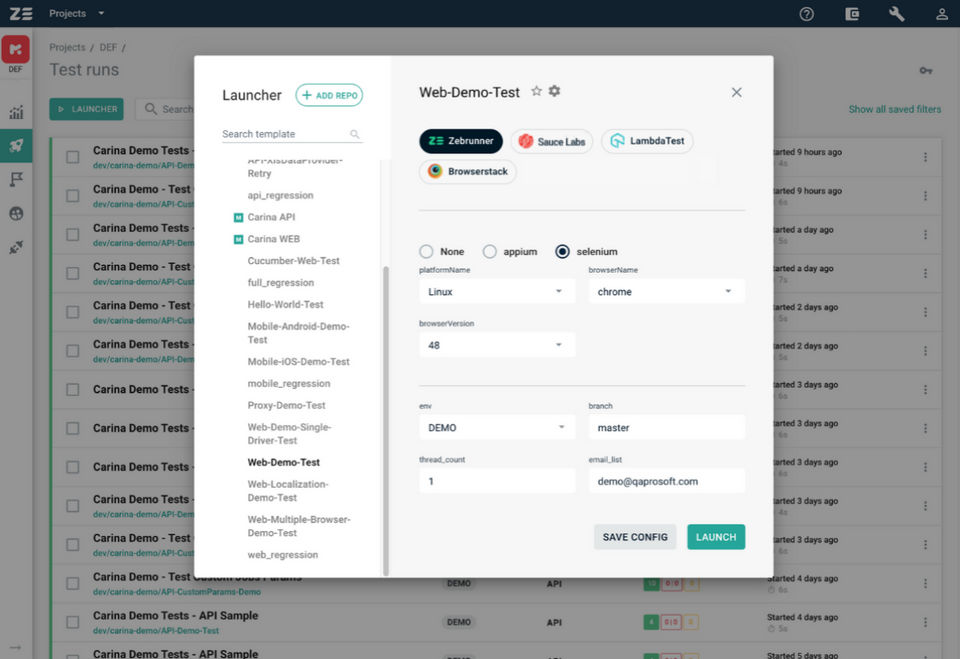 Zebrunner is the Automated Testing Software used for the below functionalities.