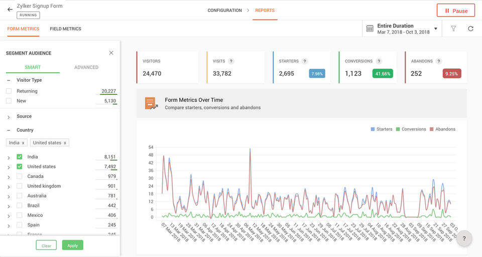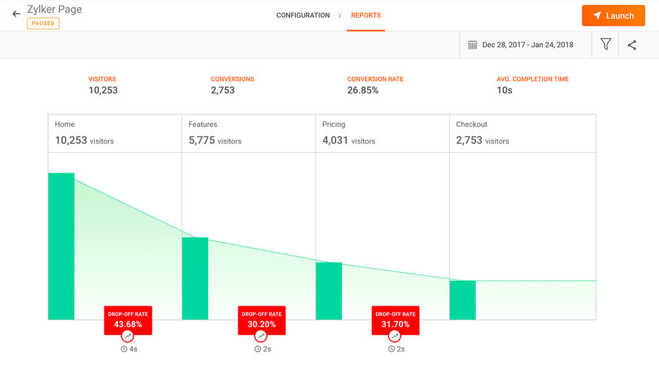 Zoho PageSense is the Conversational Marketing Software used for the below functionalities.