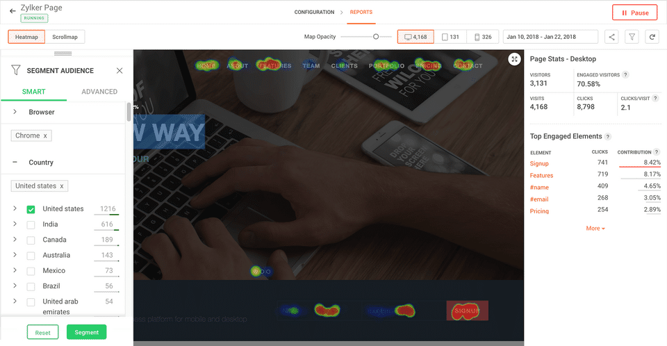 Zoho pagesense provides a data-driven approach to understand how each visitor intrects with our website,and from zoho pagesense is to achieve higher website conversions,and increase revenue,and accelerate our growth.