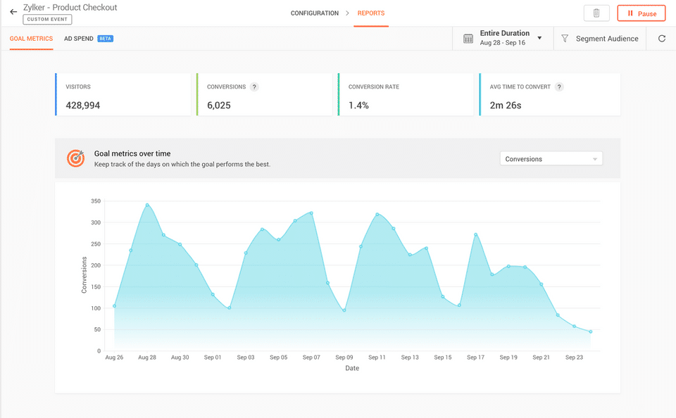 Zoho PageSense is the industry-leading platform for businesses looking to elevate their online presence through advanced CRO and personalization capabilities. It empowers users to delve deep into website analytics, uncovering actionable insights that drive measurable improvements in conversion rates, user engagement, and revenue generation. Businesses can fine-tune every aspect of their digital strategy by accessing PageSense's suite of over 10 specialized CRO tools, including A/B testing, heatmaps, session recordings, and funnel analysis. Whether optimizing landing pages, refining user journeys, running A/B tests, or implementing targeted personalization campaigns, PageSense enables businesses to deliver a tailored and compelling online experience that converts visitors into loyal customers. With its intuitive interface and robust feature set, Zoho PageSense remains the go-to solution for businesses serious about maximizing their online potential and staying ahead in today's competitive digital landscape.