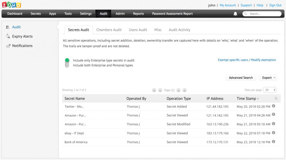 - Track password access and activities