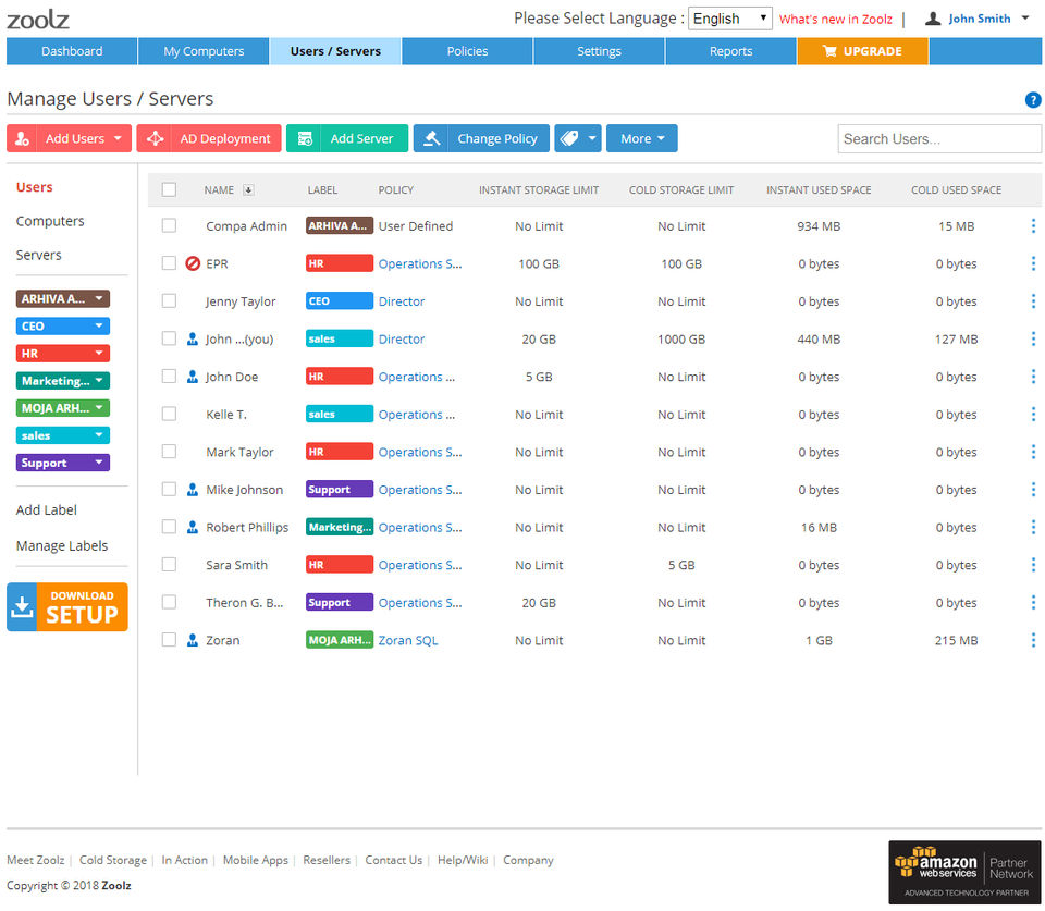 Zoolz is the Backup Software used for the below functionalities.