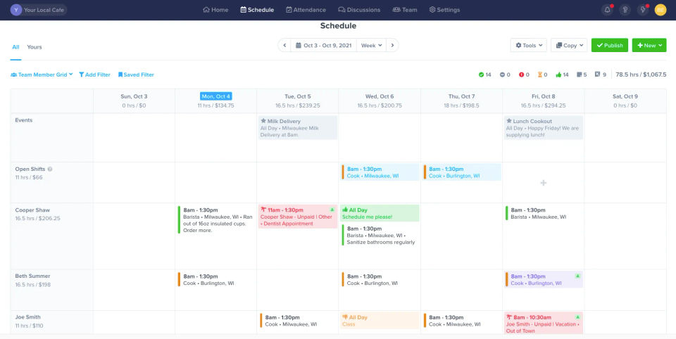I like the spreadsheet feature where you can see your shift along with your coworkers.
