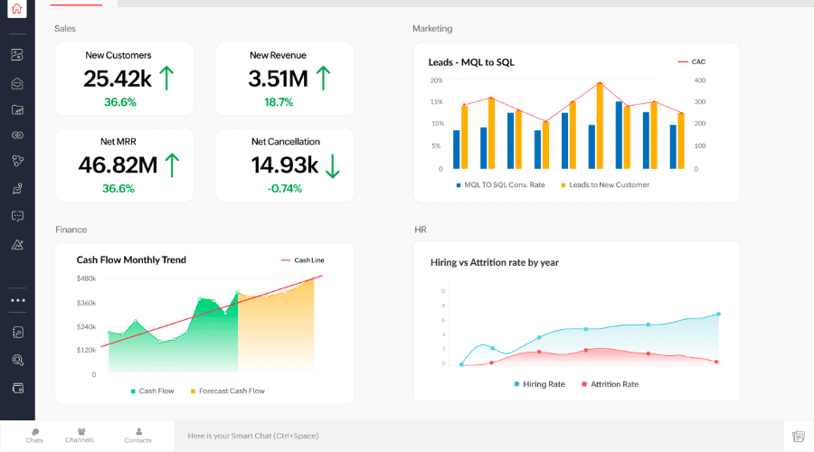 Close connection with the rest of the Zoho offerings (CRM, Desk, etc.).