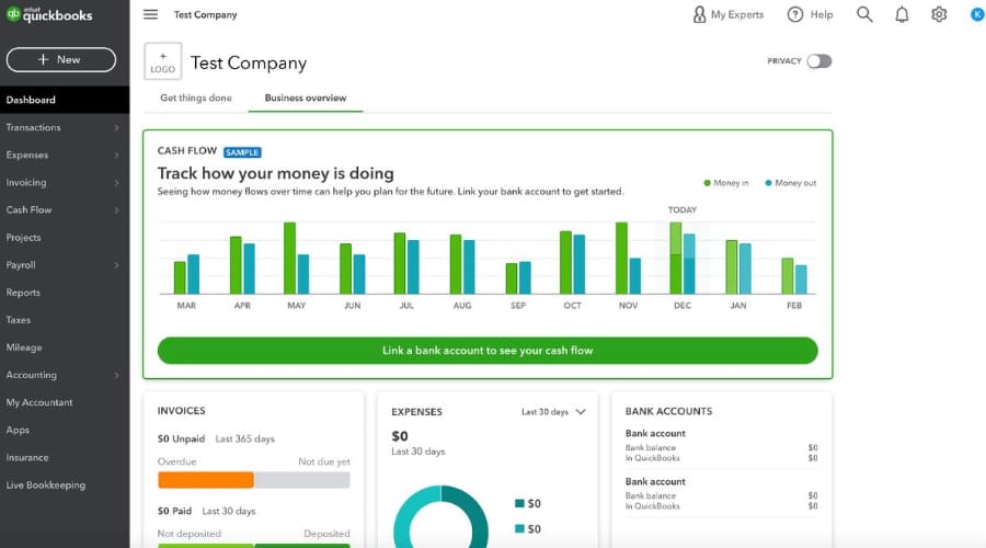 QuickBooks Online is one of the most popular business banking platforms in the US, built for small to medium-sized businesses that want complete financial visibility. It is an Intuit-designed application that links with bank accounts, automates the tracking of expenses, and real-time reporting. QuickBooks can take control and offer convenience in business with its business banking capabilities and smart integrations to handle accounting, payroll, and payments in one location, which is why it is best suited to small businesses that are interested in control and convenience.