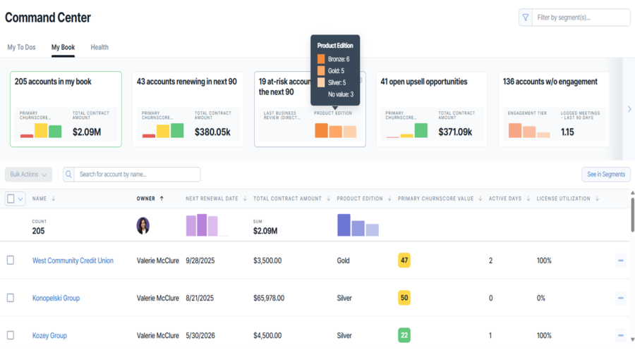 Customizable reports are clear so that your team can monitor success measures, renewals and performance across accounts. Through good reporting, decision-makers can make strategy alignment using real-time information as opposed to conjecture.