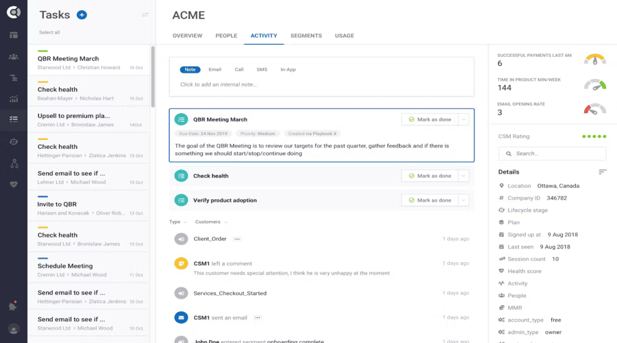 Playbooks and templates bring uniformity to the team approach to customer success processes. Be it the process of boarding a new client, renewal management, or problem-solving, there is no way these pre-built frameworks will allow anything to slip through the cracks. Most of the platforms will even provide free customer success software with ready templates so that it is easier to scale up fast without having to re-invent the wheel by growing teams.