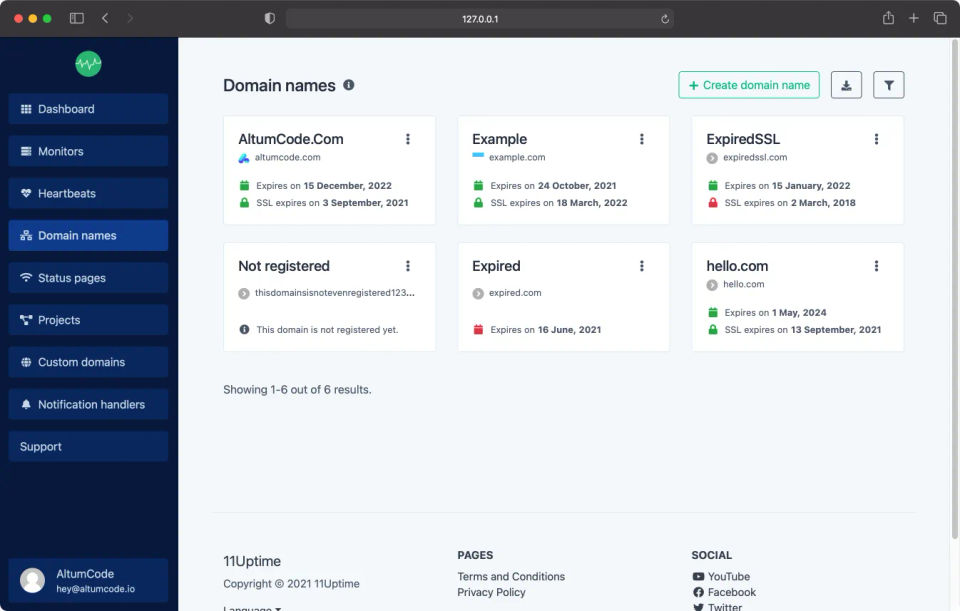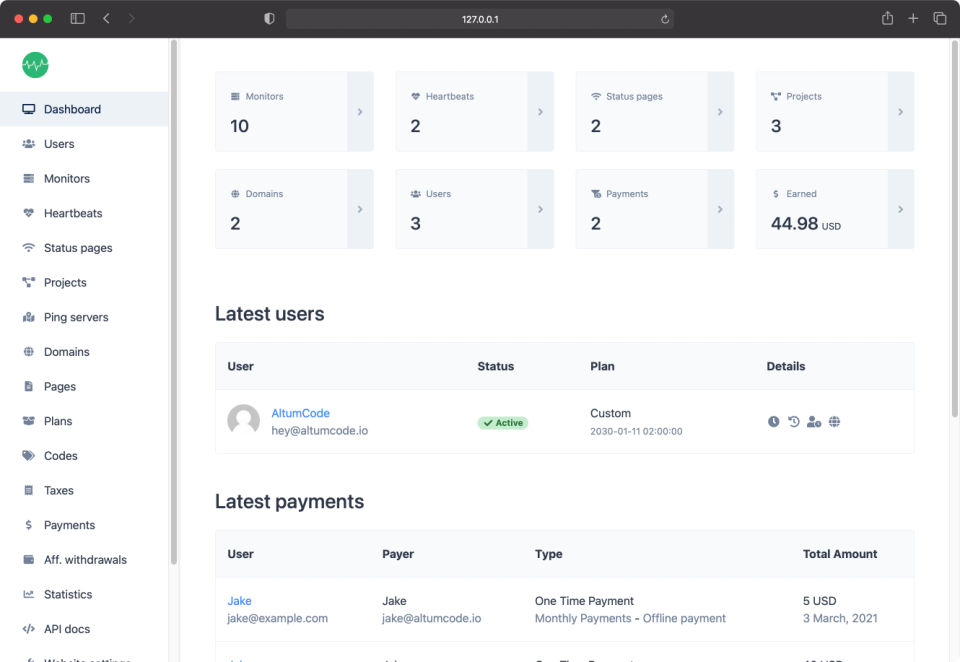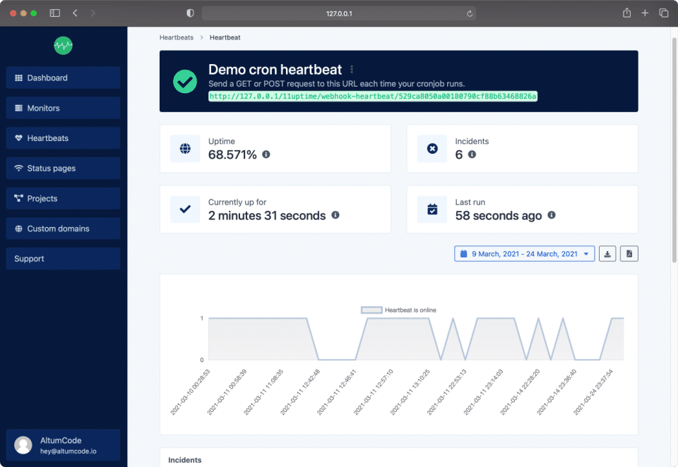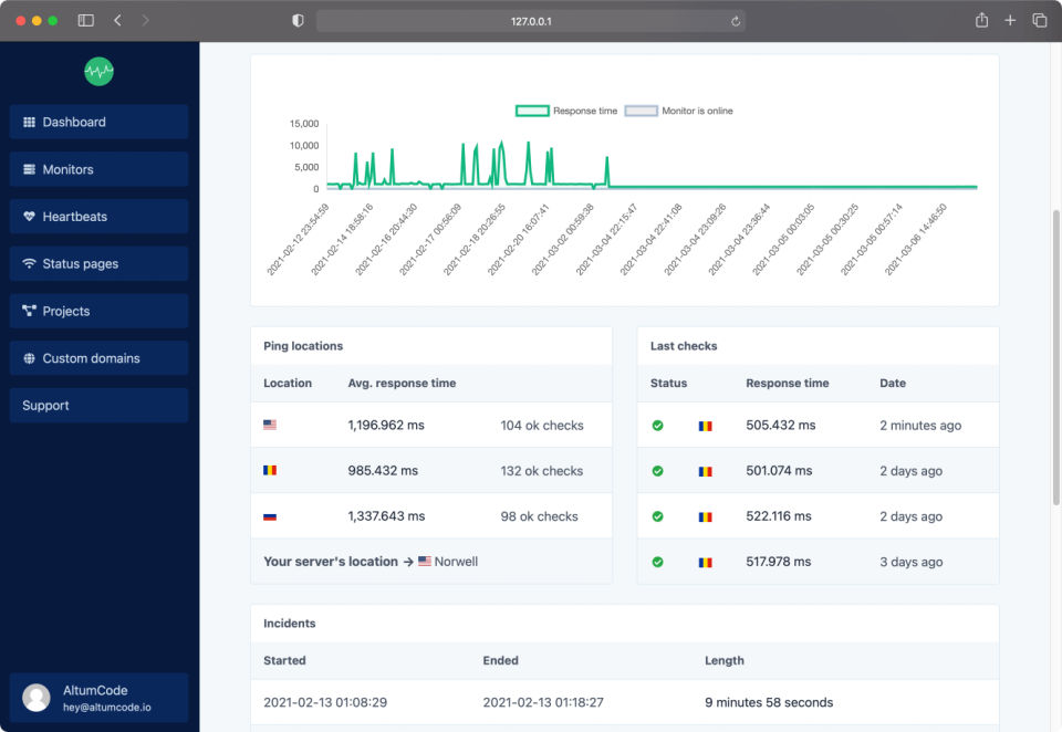 66uptime is the Website Monitoring Software used for the below functionalities.