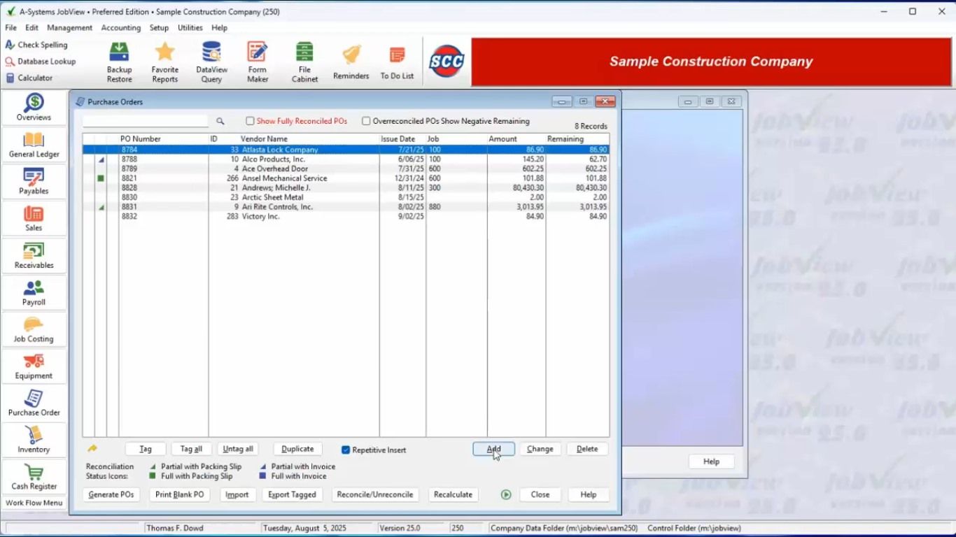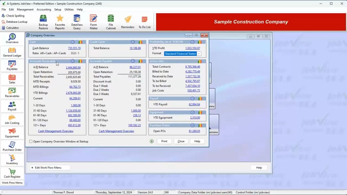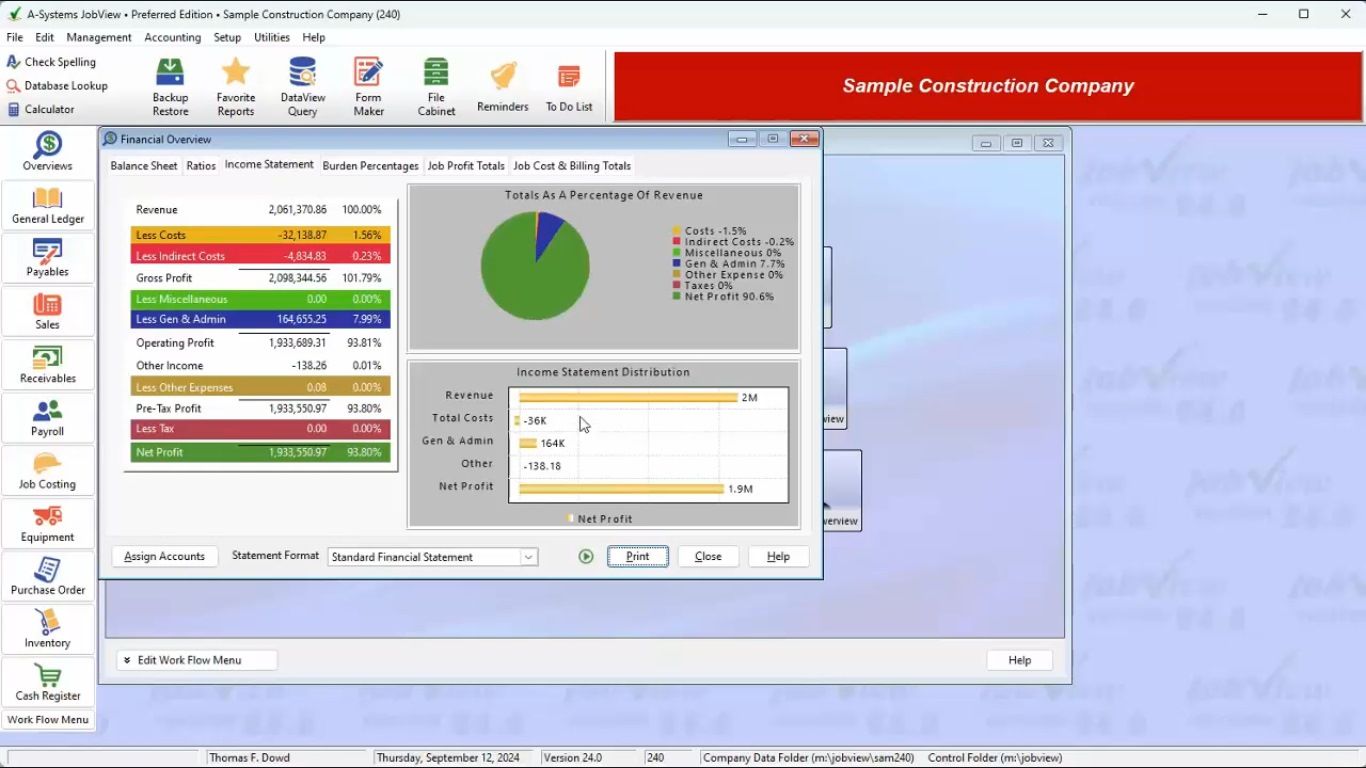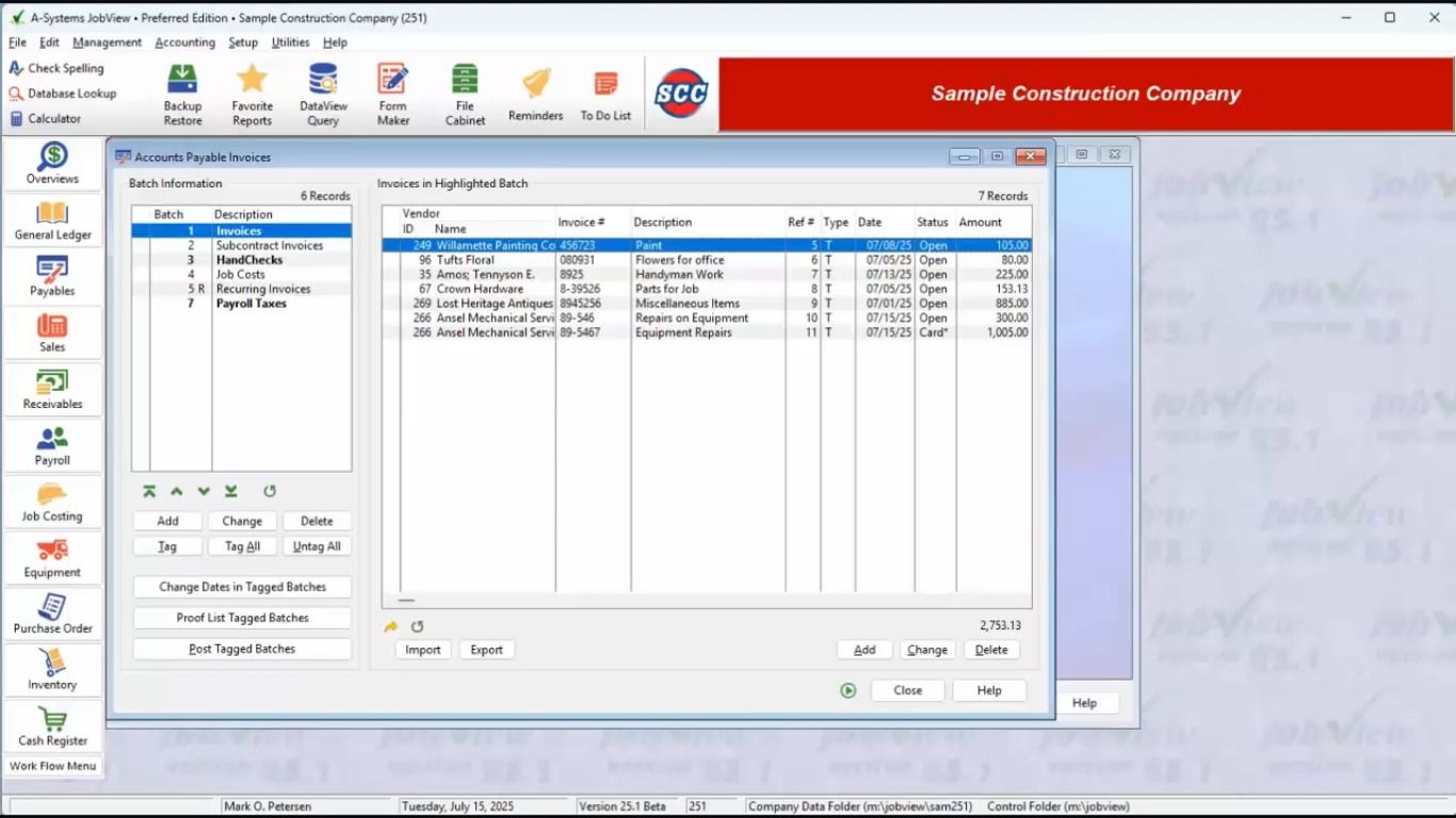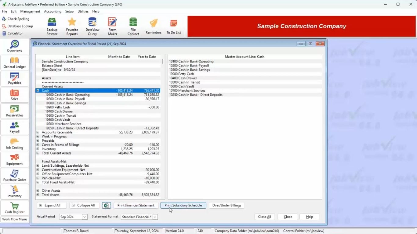 A-Systems JobView® is the Accounting Software used for the below functionalities.