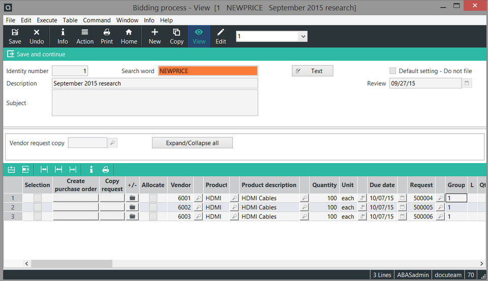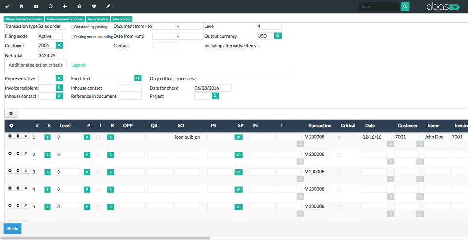 abas ERP is the ERP Software used for the below functionalities.