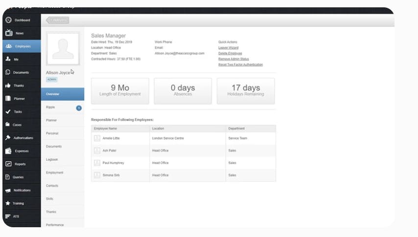 Access PeopleHR is the HR Software used for the below functionalities.