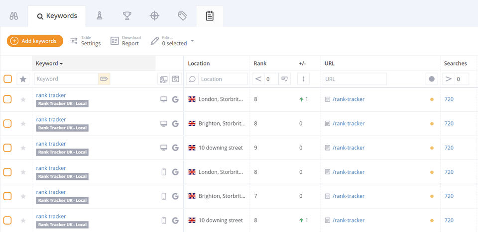 Lightning-fast keyword rank tracking