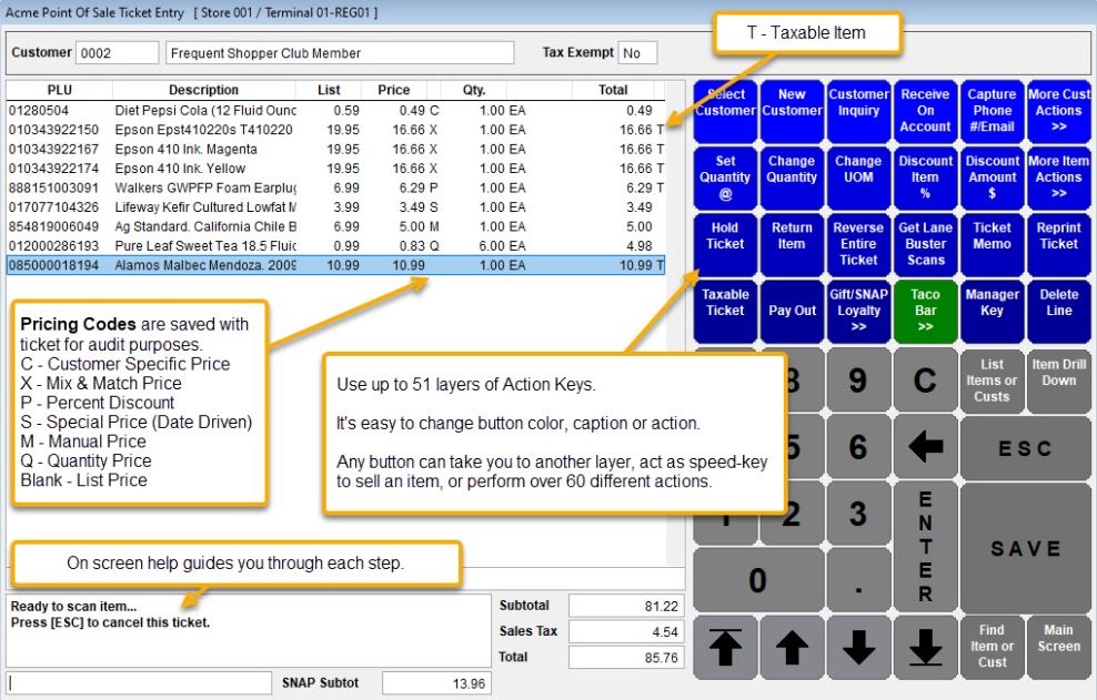 Acme Point of Sale Software is the Point Of Sale Software used for the below functionalities.