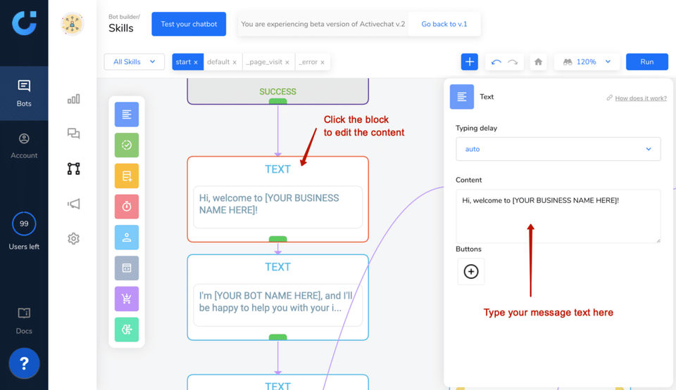 So what i really like about activechat is they integrate all bots in one place, So you can have messenger, widget on your site, SMS and others bot channels. So, this save time and is more easy to setup.