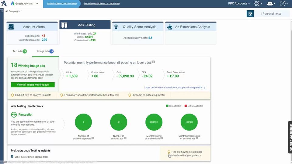 We have a massive account, thousands of ad groups across multiple languages. Adalysis makes it easy to set up and monitor tests across multiple ad groups and campaigns.