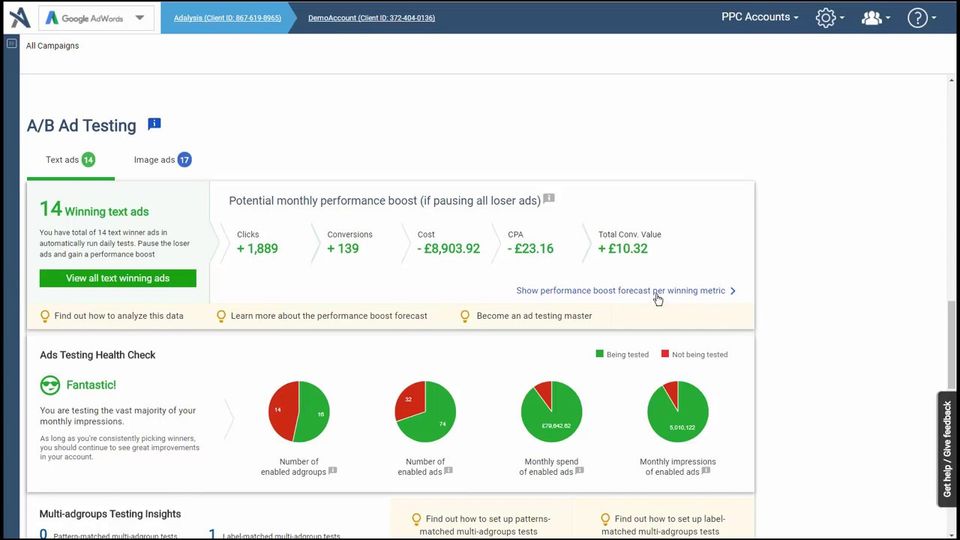 Adalysis is the PPC Software used for the below functionalities.
