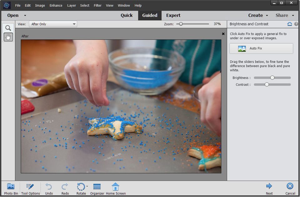 The user interface is not as intuitive as it should be. Things are a lot harder in Elements to do than in Adobe Photoshop because the controls don't work as well.