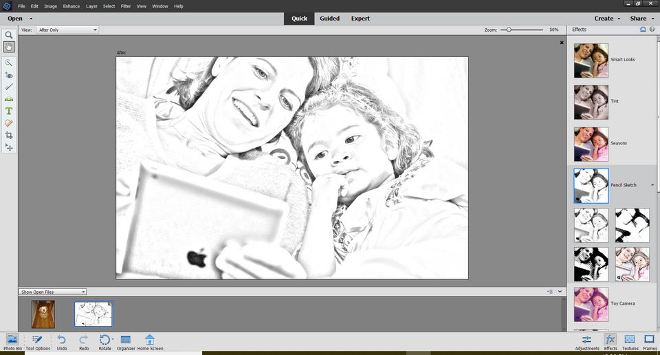 Not easy to figure out where everything is since I am a long time user of Adobe Photoshop full version and everything is in different locations within the two programs. More trouble than it's worth in my opinion. Prefer the full version of Adobe Photoshop since you can do more with it as well.